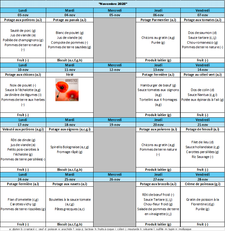 En cas d’absence le repas ne sera annulé que si vous prévenez l’école la veille avant 16h en mentionnant bien l’annulation du ou des repas/soupes.