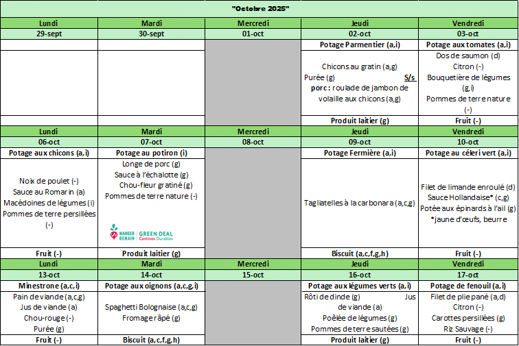 Clôture des inscriptions pour le mois de novembre le lundi 13 octobre 2025.